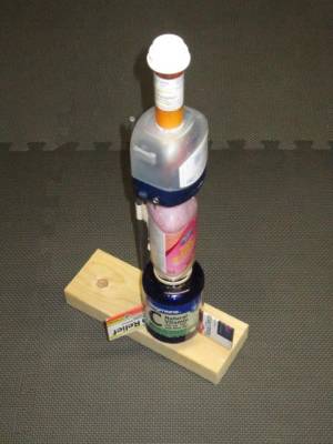 Rocket built from medicine bottles and boxes. Intended as a night flyer with microprocessor-controlled LED array but electronics are not complete.