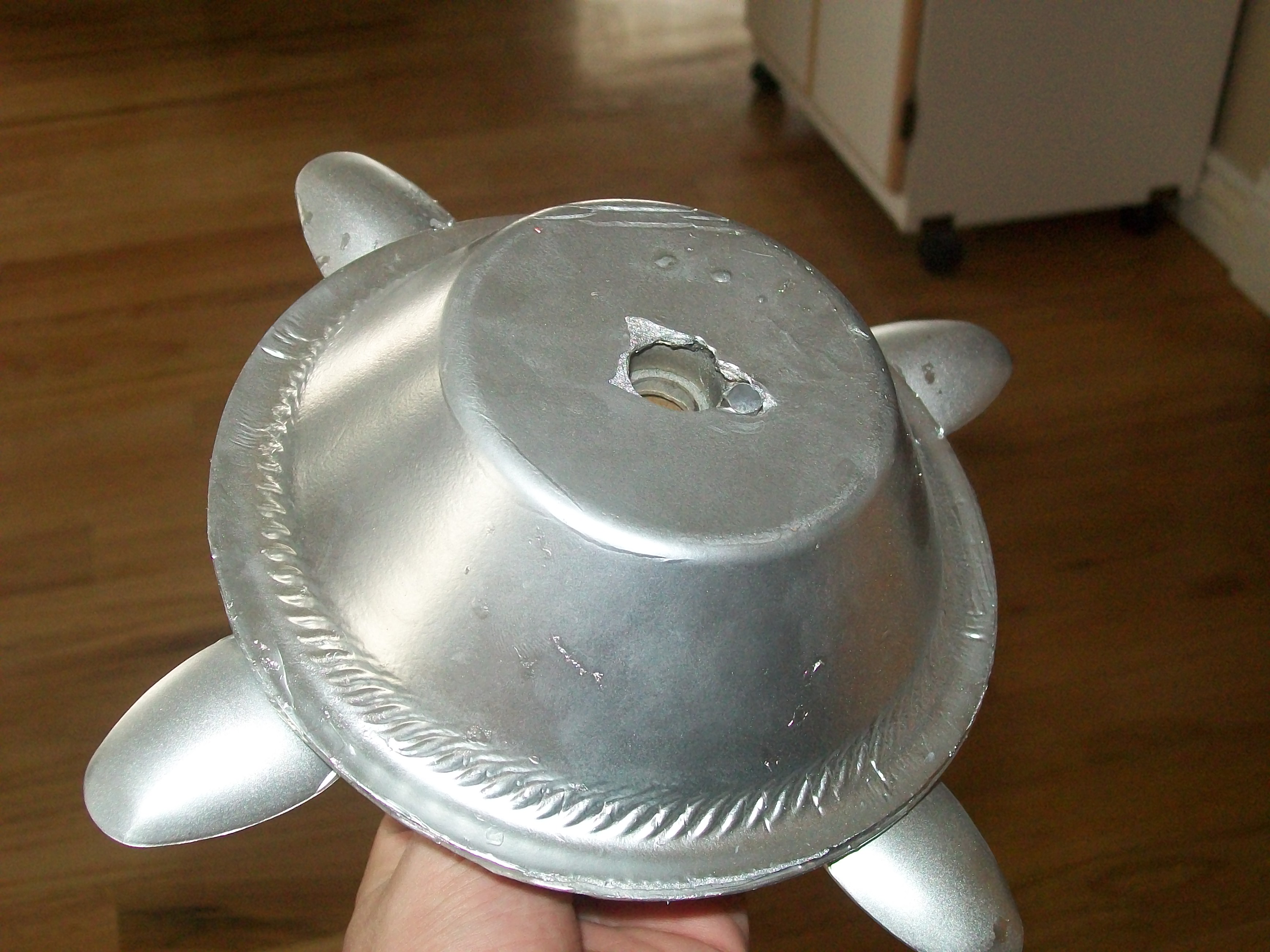 This is an oddroc built from a polystyrene bowl and plate. The fins are made of four plastic spoons which work great!
