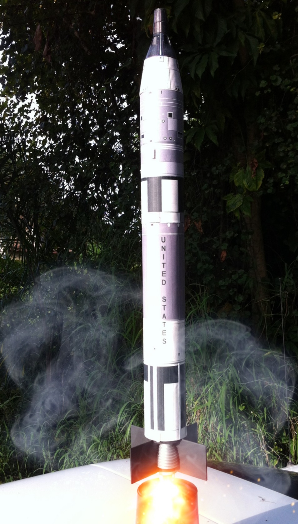 Estes Single Engine, D Powered, foam formers mounted on intertube, printed construction paper for outer skin.