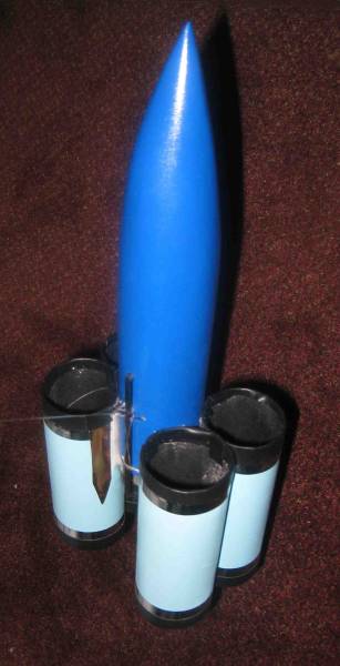 As opposed to typical 3FNC (Three Fins and a Nose Cone) this is 1FNC (One Fin and a Nose Cone) mini-engine sport rocket.