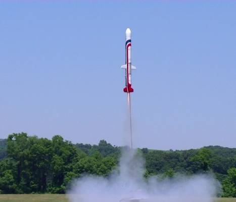 As expected, this model didn't perform close to Quest's prediction. In light winds with a C6-3, it reached 492 feet, on a B6-4 it only reached 132 feet. Flights were made with an Altimeter 2 inside clipped to the nosecone. In spite of the altitudes, the flights went very well and were quite satisfying; I expect to be flying this model a lot. This rocket has flown higher than the Great Pyramid of Giza in Egypt, even before it lost about 26 feet from erosion. It could have flown over the Kingda Ka Roller Coaster in Jackson.
