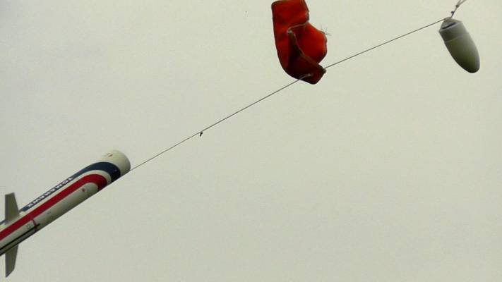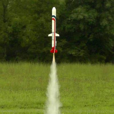 As expected, this model didn't perform close to Quest's prediction. In light winds with a C6-3, it reached 492 feet, on a B6-4 it only reached 132 feet. Flights were made with an Altimeter 2 inside clipped to the nosecone. In spite of the altitudes, the flights went very well and were quite satisfying; I expect to be flying this model a lot. This rocket has flown higher than the Great Pyramid of Giza in Egypt, even before it lost about 26 feet from erosion. It could have flown over the Kingda Ka Roller Coaster in Jackson.