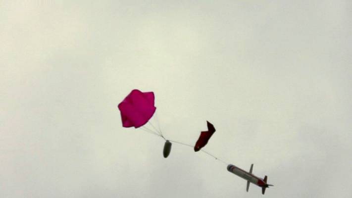 The 14 inch parachute took over and helped it to the ground at 10 mph - a bit faster than the old Quest-supplied 'chute. It landed maybe only 50 feet away from the pad, and almost on top of me. Flight time was only 9.8 seconds - the fastest ever. Both the apogee and speed were also the lowest ever for this rocket, but still, it came back undamaged.