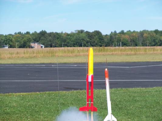 Need more like a 4 second delay. Chute deployed this time, but landed on the tar and snapped off 2 fins. May have to revisit fin attachment.