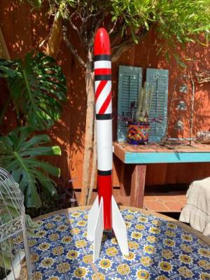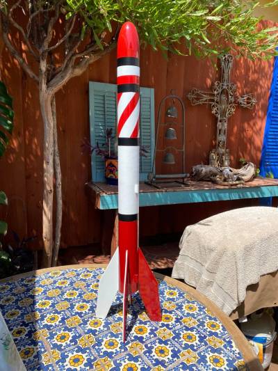 I may swing back and paint this rocket for real as I now have all the outlines for my masking lines already laid out. It would definitely hold up better to close up inspection if it were painted.