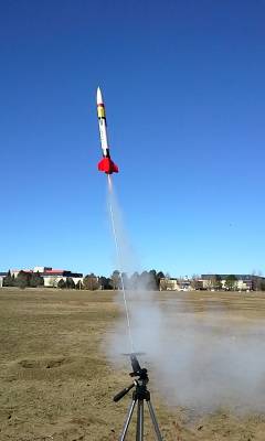 First flight. Good low flight. Easy recovery. Rocket nosed over and didn't deploy the recovery system until it was way past apogee. Shorter delay? They don't make one. Oh well. Good flight, just a little scare that it would lawn dart.
