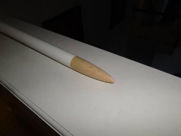 I really like this kit, but I was not impressed with the plastic nose cone that came with it. Too stubby for my tastes, and the overall rocket said wooden nose cone to me. Luckily I had a balsa cone in my stash that I really liked in place of the plastic one. Just slightly longer than the plastic cone, but that 1/2" made a big deal to my eyes.
