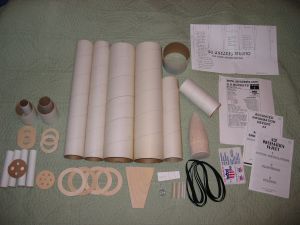 First impression is that I was impressed by the quantity of the parts upon opening the large box. The large body tubes did have dents in the ends of each one but nothing serious enough to warrant replacement. These flaws were either cut out when making the transition shroud or shaped back into round when coupled together. All other parts were in excellent shape. While the number of parts may be initially daunting, a sizable portion are for the interchangeable motor mounts.