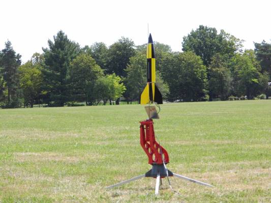 Maiden flight. Rocket shot off the pad straight up. 5 second delay a bit long, didn't have any D12-3's. Glad for the longer delay though as rocket nearly drifted out of park. No damage on recovery other than a small black scuff mark on NC.