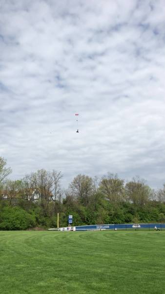 Recovers safely on the small parachute. Tempted to switch it our for a 6" chute the next time I'm on an all-grass field.