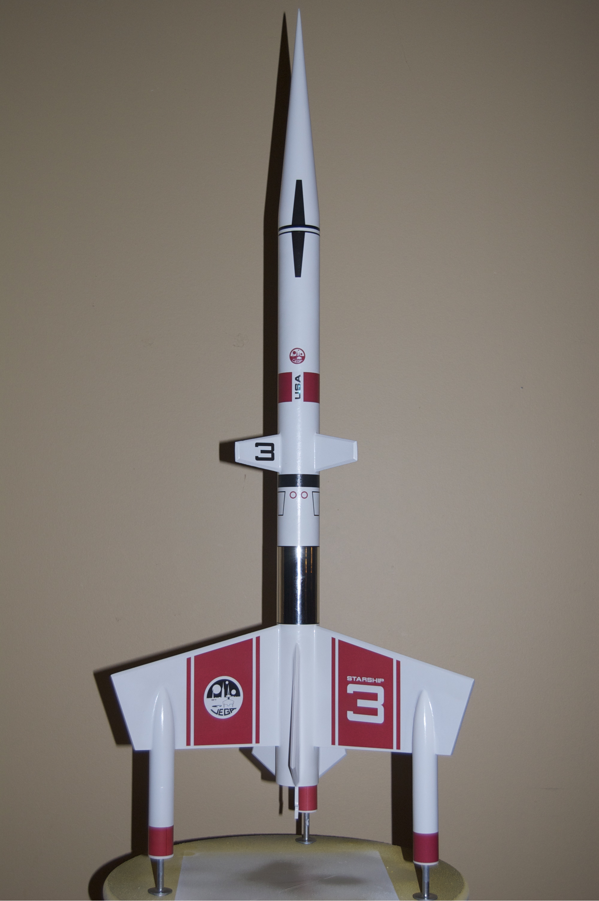 Brief: This kit is a beautiful upscale and upgrade to the Estes classic Starship Vega. Magnificently engineered and loaded with top-quality components and features, this rocket would be a great addition to any BAR's fleet. From what I can tell, upgrades to the original design include nose cones on the wing pods/landing gear, a fully functional set of shock absorbers in the landing gear, ...