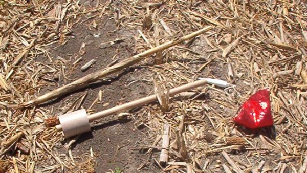 It was quite windy so I elected not to use the long delay motors the instructions recommended. The rocket was prepared like most small, parachute-recovery types with 3 squares of recovery wadding and friction fitting the motor. It jumped of the pad and flew very straight but the A8-3 don't carry it very high. Ejection was just before apogee and recovery was quick, close to the pads. The second flight on a B6-2 was about twice as high with ejection well before apogee and an easy recovery. The third flight on a C6-3 went much higher with ejection while the rocket was still going up. The wind carried it into a recently harvested cornfield about 1500 feet from the pads. I was very glad the Rocketman Rockets parachute was a bright metallic red, otherwise I might have had some difficulty finding the unfinished rocket among the short, brown corn stalks.