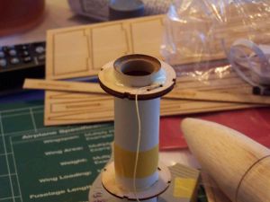 The kit provides 3 centering rings but 2 of them are laminated together to form a single stronger one. These are the rings that have holes pierced to receive the Kevlar® from the shock cord. The two rings are glued together so that their grains lie at right angles to each other.