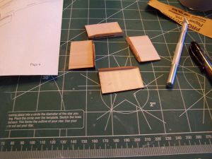 The forward fins are quite a bit bigger than the aft ones but are assembled in the same same. Each fin was glued to its plate with yellow glue and checked for straightness. These required just a touch of shaving to make fit.