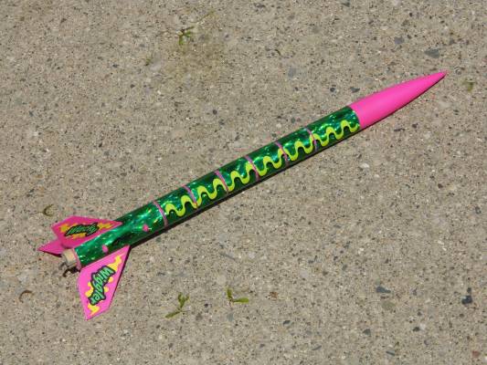 Wacky Wiggler launches like a standard rocket, but comes down in a whole new way. The prismatic body sections seperate and the entire rocket "wiggles" its way back to earth. This wacky rocket can fly over 1000'.