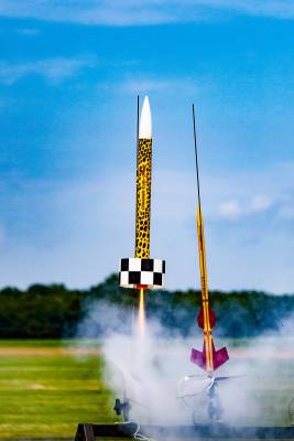Another successful flight!Went a little higher. Plastic parachute definite needs to be replaced with a nylon. The nose cone was recycled from a destroyed AMRAAM kit from Rocketarium.