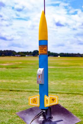 Very lower than expected altitude. Might be because of the short size couples with the weight of the RunCam2 camera and shroud mounted on body tube. Only launched once due to weather becoming poor towards end of the day. Will try again next month without camera shroud and with a G53 motor. Nuclear Wessel did twirl on the way up -- again, possibly due to the camera weight and mounting position in close proximity to the fins.