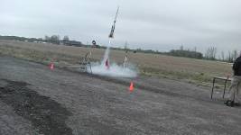 2014-05-14Astrobee D IV (D)  Flight The Astrobee D IV (D) high powered rocket was launched on a parabolic flight path over the Gananoque airfield. Although the launch vehicle reached only a minimal altitude, all systems performed properly with the low altitude attributed to a poor thrust performance from the main engine and ... [More]