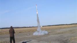 2013-10-17Astrobee D IV (C)  Flight Flight was a success although the left side boosters nose cone broke off during the launch which help limit the altiude. The science experiement (line of sight) worked well while the booster and upper stage payload returned safely to the ground under their own parachutes. On board ... [More]