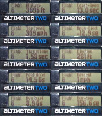 Flew with AltimeterTwo, data recorded. Known issue with AltimeterTwo resulted in bad readings for Apogee-Eject, Eject altitude and Descent speed.