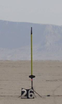 Fourteenth flight (first as mk IV, 2015-04-04, I357T-12) resulted in significant airframe damage due to very early AT motor eject. Lower BT zippered down to coupler from mkIII repair. Additionally the Slimline motor retainer was crimped during landing, had to be hacksawed off rocket. Rocket finally rebuilt March 2016, with two new airframe sections and new avionics bay coupler to replace damaged piece and restore original dual-deploy design. AeroPack M54E used to replace original Supermount during mk III repair now used for motor retention. Renamed "Bumbl-B mk V", used name "Return of Bumbl-B" on first flight card but name was not announced.
