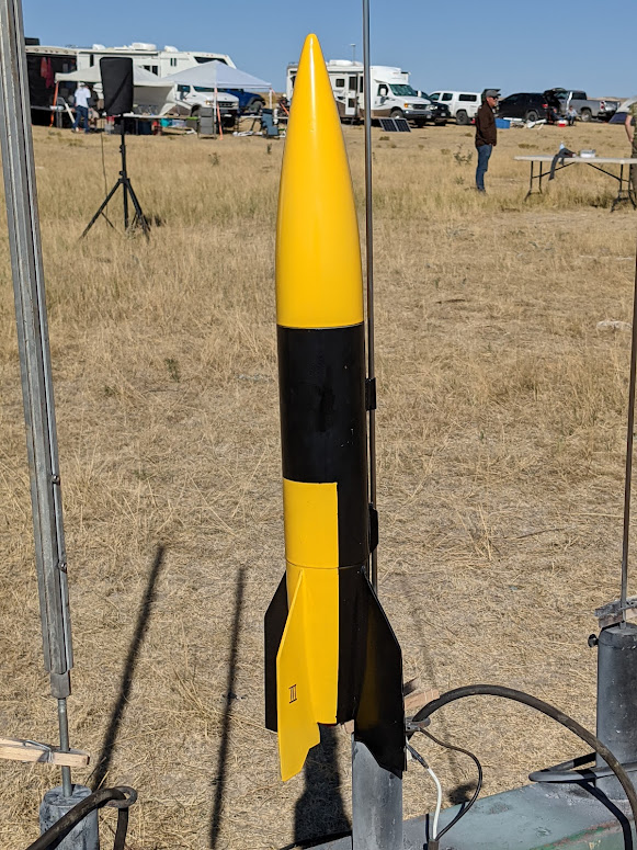 Great flight and recovery! Rocket weather cocked a little due to the breezy conditions. The motor took three ignitors to get off the pad. The first one was a copper head which is always a hit or miss. The next two tried where the QuickBurst Twiggy motor starters of which the first one popped out and then the third I secured to the nozzle with a rubber band.