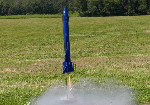 The liftoff was brisk, with accelerations higher than previously recorded for this rocket, peaking at 8.4 Gs and averaging 3.4Gs for the 8/10 second burn. This model then reached a top speed of 56 mph. The actual delay was a full second short and occurred at 127 feet. After 1/10 second it reached an apogee of 149 feet (one foot higher than the previous flight) with the parachute still in the tube. The rocket continued down for a nervously long time with only the nose cone out, appearing to be heading for disaster.