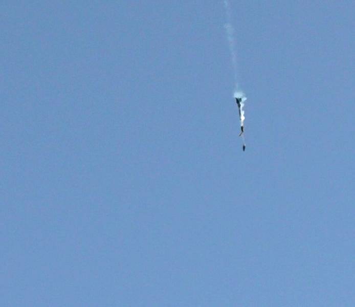 Captured: the moment of ejection, showing the heavy smoke comming out of the body tube top and drifting past the fins.