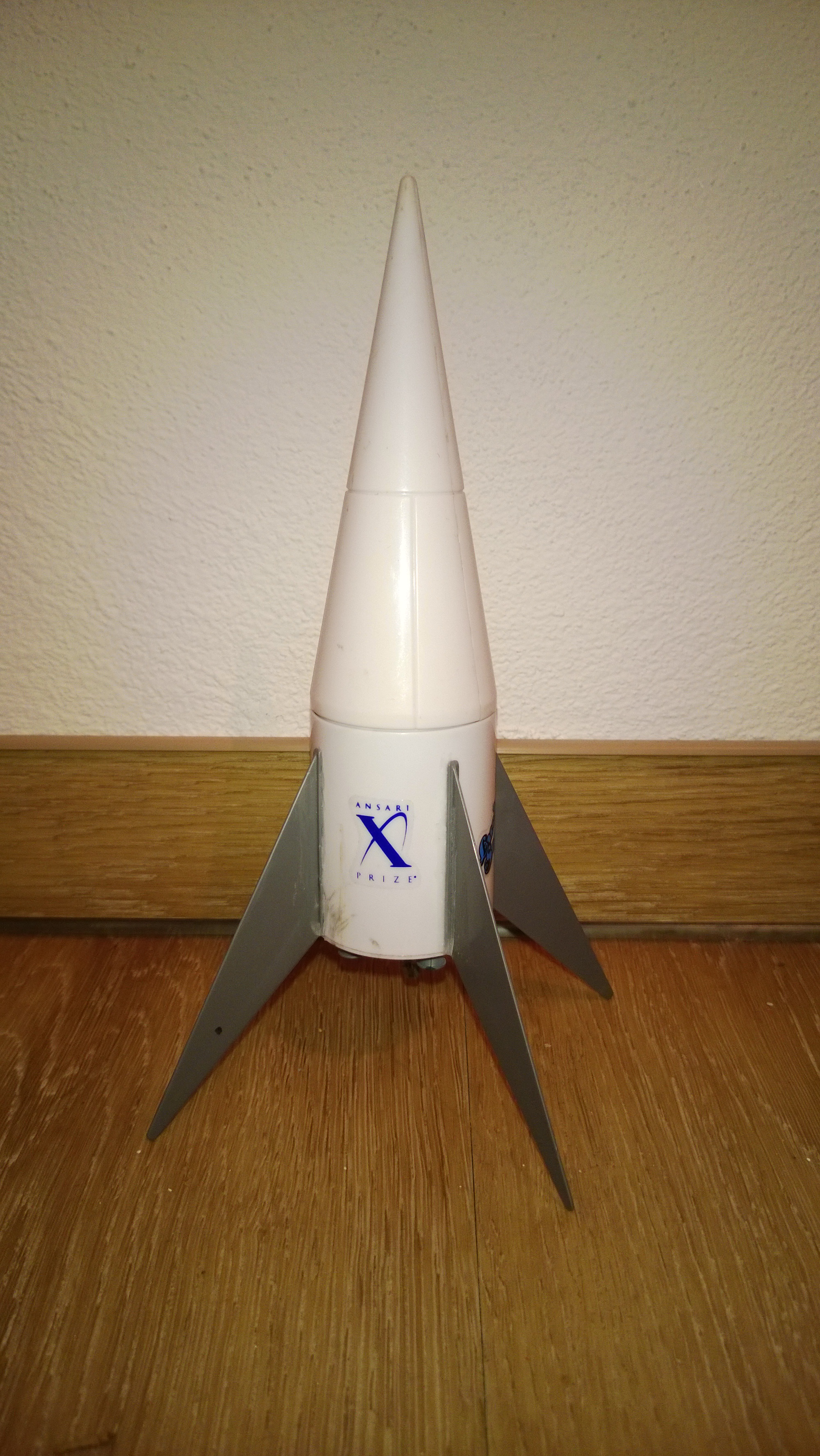 Brief: 1:50 Scale model of the Acceleration Engineering LLC's entry in the X-Prize race. Single stage, parachute recovery. Skill level E2X. Construction: The kit includes: 1 BT-5 engine mount 1 mini engine hook 1 rubber (REAL rubber) shock cord. 1 12" chute clay weight plastic parts: nose cone assembly (2 halves, nose cone cap) body and body ...