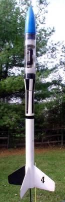 The X-Ray has now been restored and is flying again. I found the same clear tube length and diameter from Estes - but I had to spring for a full Magician kit to get it! I gave it a new Kevlar shock cord mount and some new rubber, reinforced the screw-eye to the balsa transition (which to my suprise was never glued in originally!). It also received a new 9.3" plastic parachute with longer shroud lines and a good hard cleaning. Its first new flight with an A8 motor brought it up to 216 feet at 76 mph (111.5 ft/sec.). There will be more flights with this for sure.