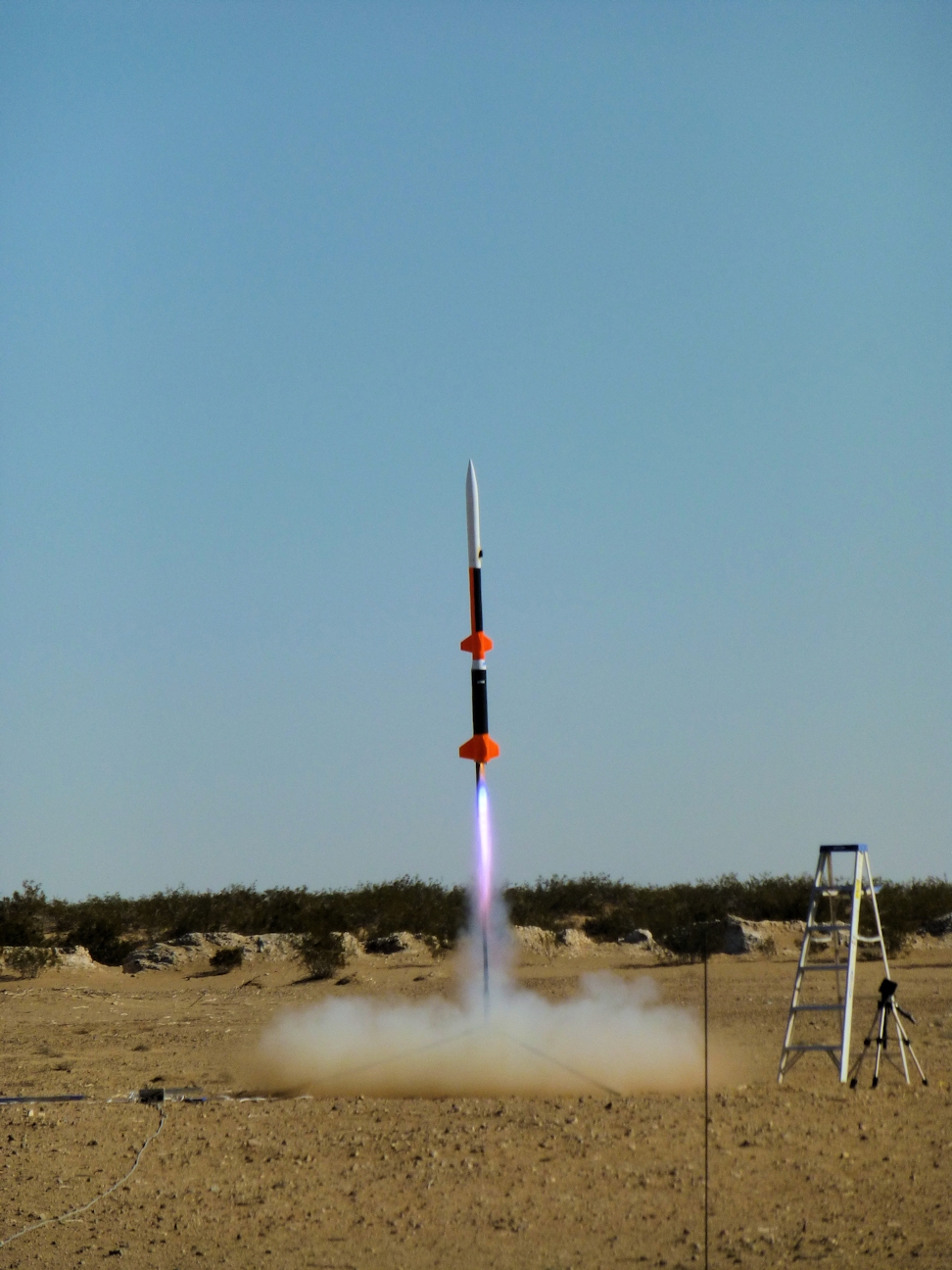 Started out as a semi-scale version of the X-51A Waverider, but evolved into a simple 3FNC with a 4-inch first stage with 54mm MMT and a dual-deploy 3-inch upper stage with a 38mm MMT.