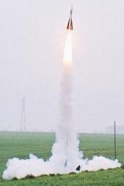 Due to the excessive weight the only motors for this rocket are at the end of the 38mm range. Hence, a J350, J570 or big Pro38 motor is required. For its first flight I had a J350 laying about and decided to give it a go. Using motor ejection as a backup and an RDAS flight computer as the primary means of recovery I prep'd the rocket with a drogue and a big 44" Rocketman chute. Shock cords were all tubular nylon (15feet on each side of the electronics bay). I was really concerned about drag separation so I used shear pins to hold both the nosecone and motor section to the recovery section (I tested each end using 1gram of BP for the aft section and 1.5gram of BP for the nosecone). Finally the moment of truth. Would the rocket fly straight or would it 'turn its tail and bury itself in the soft December ground' ? 3 2 1 Whoooosh the J350 lit and in the low light of a December sky this was very cool. Straight up on a nice long tail plume it climbed to 2500 feet before the ejection charge let loose the drogue. Down it came... down... down... down... splat. The main didn't fire. Well this was going to be interesting. Did my heavy duty treatment of the fins work or would the rocket be a 'write-off' ? Upon inspection the fins were untouched by the experience but the forward recovery section was split. The data from the RDAS showed a nice boost with apogee being detected. However, both ejection charges were intact and it was the backup motor ejection which save the rocket from a total lawn dart. I can only surmise that the battery was too weak to fire the Davy Fire E-matches. So I am switching to flashbulbs in cold weather. I am finishing the new forward recovery section and it will fly again soon.