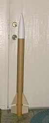 The first flight was on a G80. I thought it seemed a little underpowered for this size of a rocket, but RockSim said it was ok, and Jason from Yank Enterprises said it was fine. I loaded it up and lit it off and that little motor kicked the rocket up for a perfect flight.